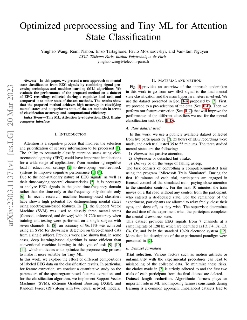 Optimized preprocessing and Tiny ML for Attention State Classification