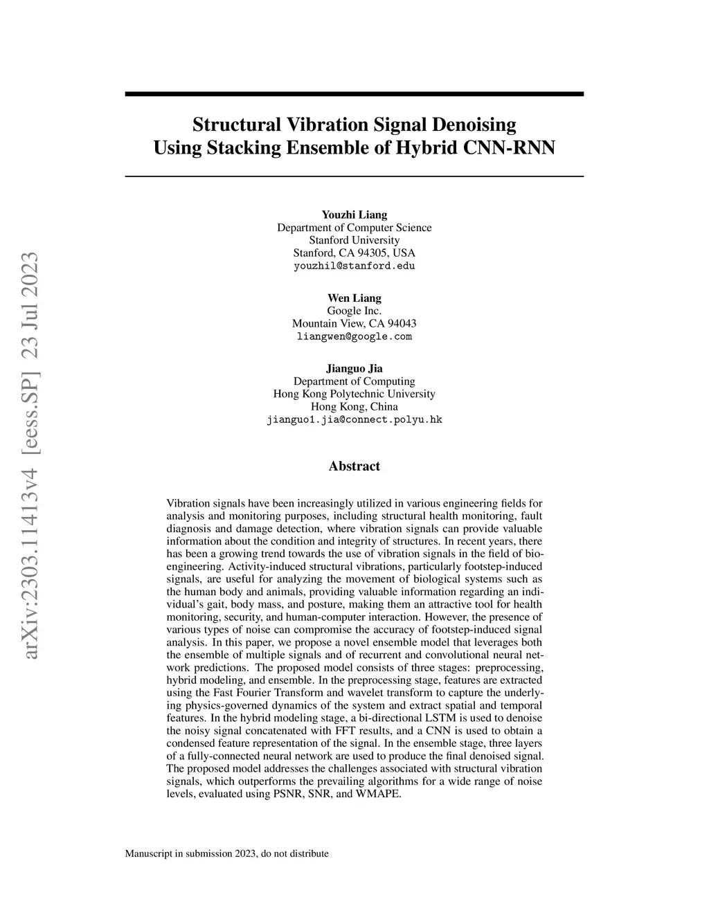 Structural Vibration Signal Denoising Using Stacking Ensemble of Hybrid