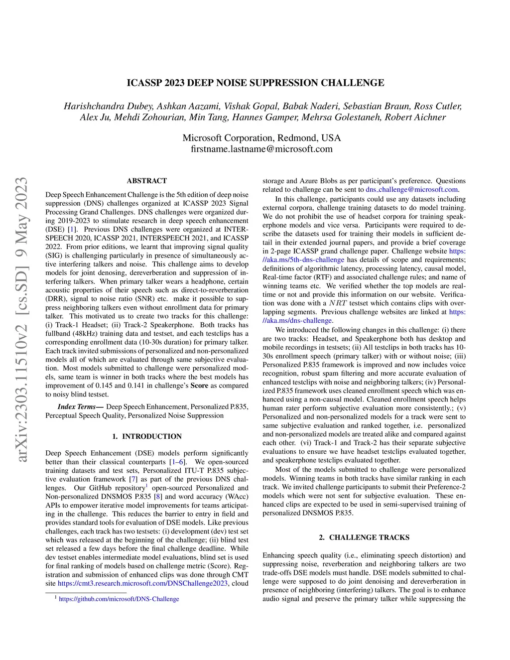 ICASSP 2023 Deep Noise Suppression Challenge