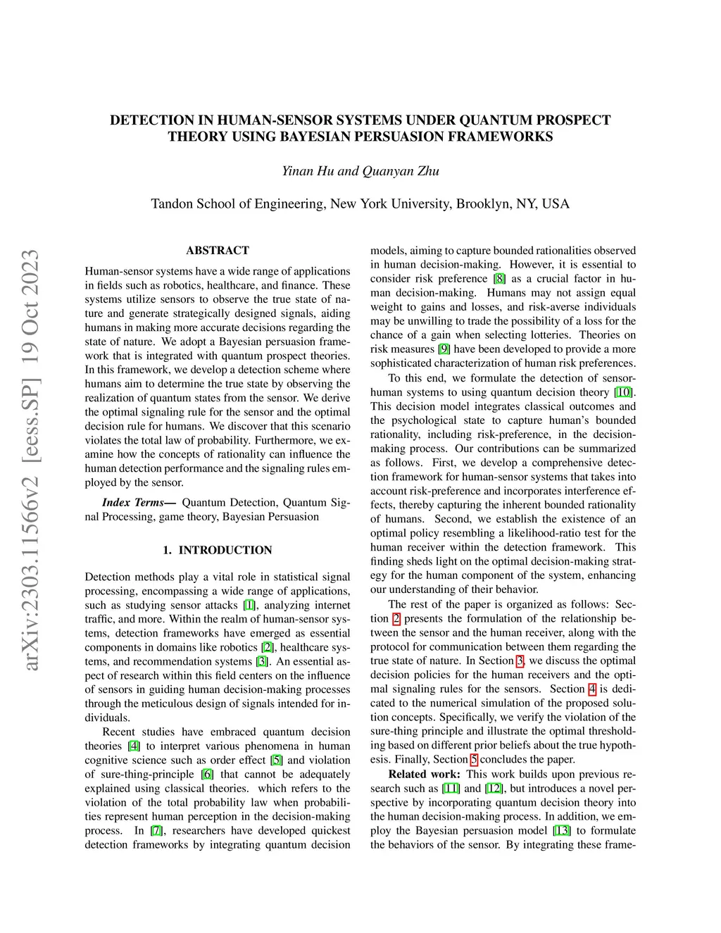 Human-sensor systems have a wide range of applications in fields such as robotics, healthcare, and finance. These systems utilize sensors to observe the true state of nature and generate strategically designed signals, aiding humans in making more accurate decisions regarding the state of nature. We adopt a Bayesian persuasion framework that is integrated with quantum prospect theories. In this framework, we develop a detection scheme where humans aim to determine the true state by observing the realization of quantum states from the sensor. We derive the optimal signaling rule for the sensor and the optimal decision rule for humans. We discover that this scenario violates the total law of probability. Furthermore, we examine how the concepts of rationality can influence the human detection performance and the signaling rules employed by the sensor.