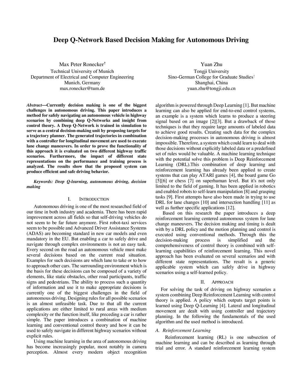 Deep Q-Network Based Decision Making for Autonomous Driving