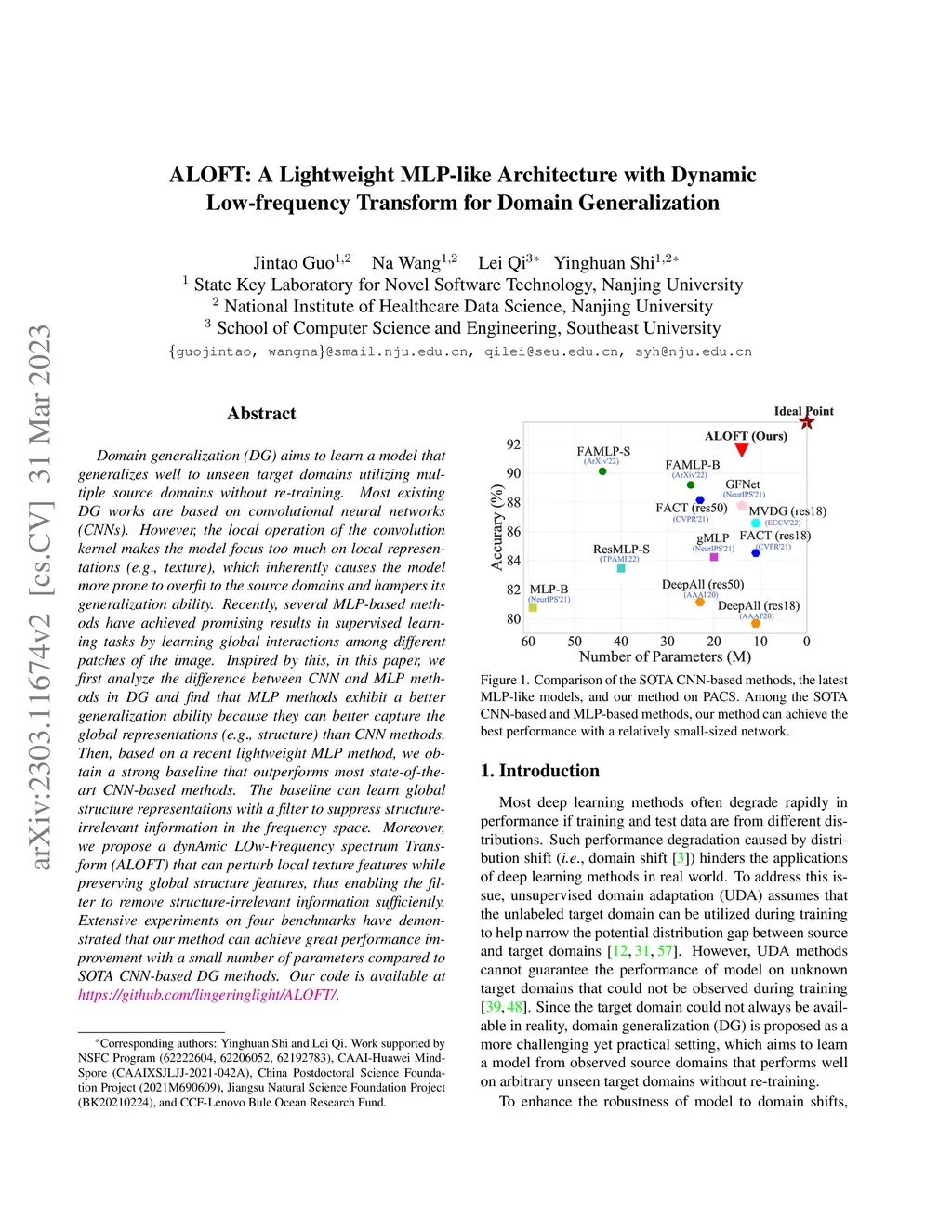 Domain generalization (DG) aims to learn a model that generalizes well to unseen target domains utilizing multiple source domains without re-training. Most existing DG works are based on convolutional neural networks (CNNs). However, the local operation of the convolution kernel makes the model focus too much on local representations (e.g., texture), which inherently causes the model more prone to overfit to the source domains and hampers its generalization ability. Recently, several MLP-based methods have achieved promising results in supervised learning tasks by learning global interactions among different patches of the image. Inspired by this, in this paper, we first analyze the difference between CNN and MLP methods in DG and find that MLP methods exhibit a better generalization ability because they can better capture the global representations (e.g., structure) than CNN methods. Then, based on a recent lightweight MLP method, we obtain a strong baseline that outperforms most state-of-the-art CNN-based methods. The baseline can learn global structure representations with a filter to suppress structure irrelevant information in the frequency space. Moreover, we propose a dynAmic LOw-Frequency spectrum Transform (ALOFT) that can perturb local texture features while preserving global structure features, thus enabling the filter to remove structure-irrelevant information sufficiently. Extensive experiments on four benchmarks have demonstrated that our method can achieve great performance improvement with a small number of parameters compared to SOTA CNN-based DG methods. Our code is available at https://github.com/lingeringlight/ALOFT/.