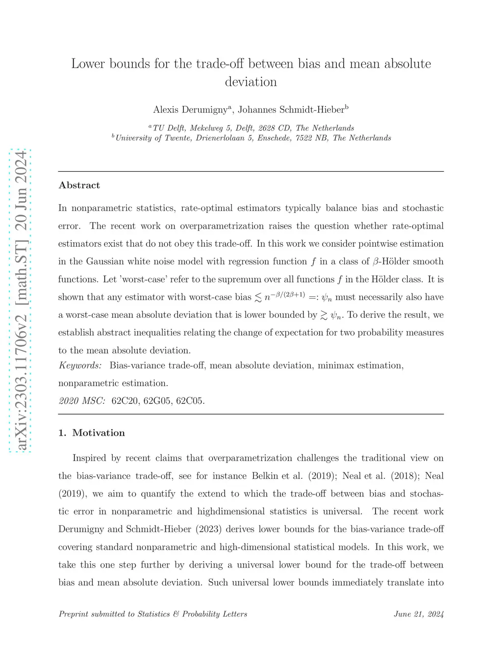 In nonparametric statistics, rate-optimal estimators typically balance bias and stochastic error. The recent work on overparametrization raises the question whether rate-optimal estimators exist that do not obey this trade-off. In this work we consider pointwise estimation in the Gaussian white noise model with regression function in a class of -H\"older smooth functions. Let 'worst-case' refer to the supremum over all functions in the H\"older class. It is shown that any estimator with worst-case bias must necessarily also have a worst-case mean absolute deviation that is lower bounded by To derive the result, we establish abstract inequalities relating the change of expectation for two probability measures to the mean absolute deviation.