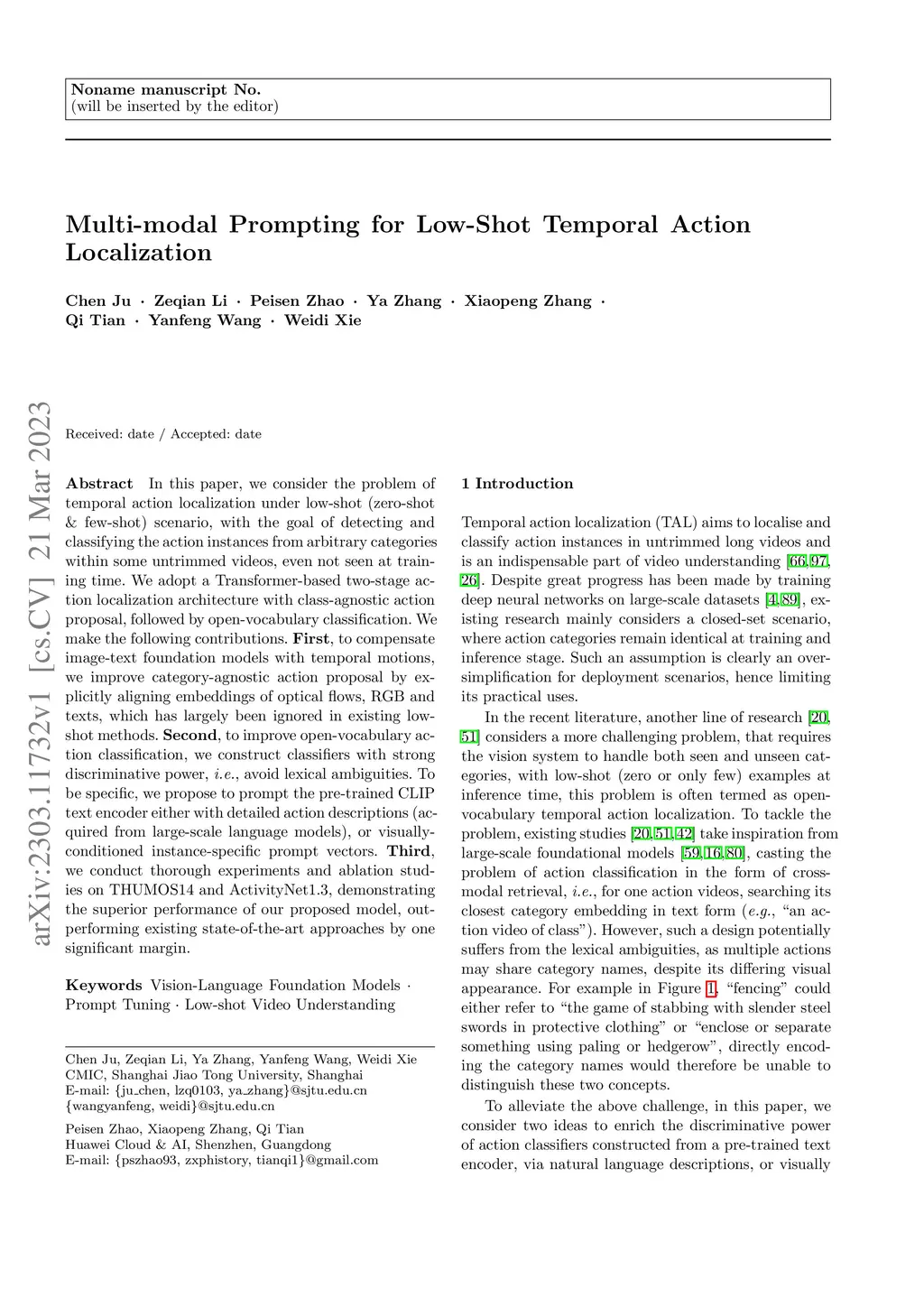 Multi-modal Prompting for Low-Shot Temporal Action Localization