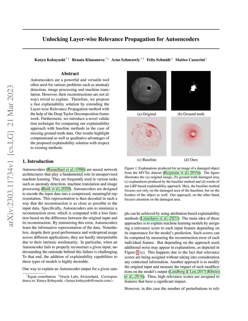 Autoencoders are a powerful and versatile tool often used for various problems such as anomaly detection, image processing and machine translation. However, their reconstructions are not always trivial to explain. Therefore, we propose a fast explainability solution by extending the Layer-wise Relevance Propagation method with the help of Deep Taylor Decomposition framework. Furthermore, we introduce a novel validation technique for comparing our explainability approach with baseline methods in the case of missing ground-truth data. Our results highlight computational as well as qualitative advantages of the proposed explainability solution with respect to existing methods.