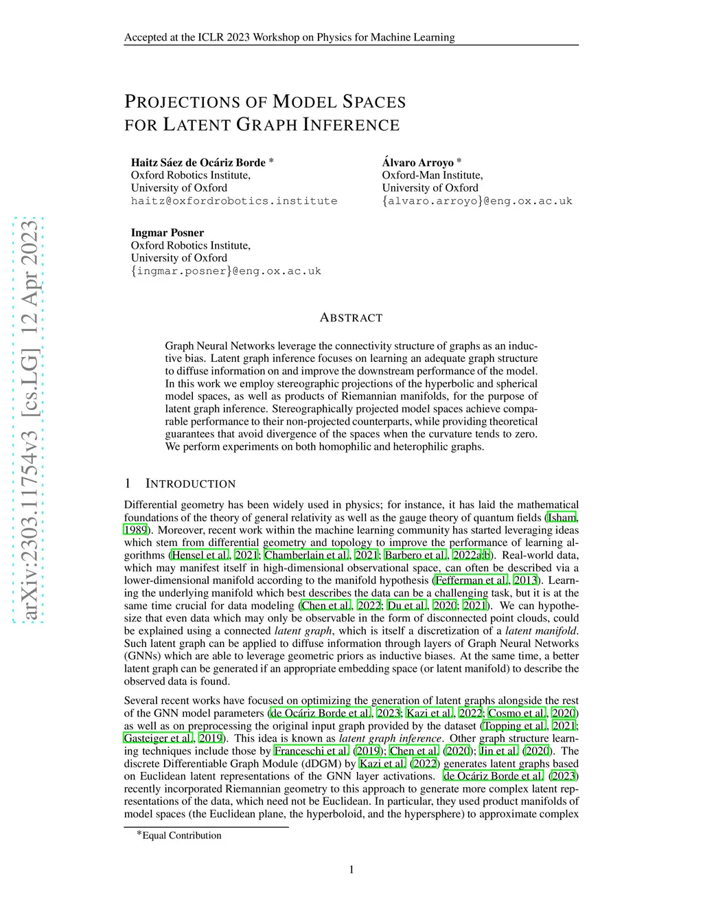 Graph Neural Networks leverage the connectivity structure of graphs as an inductive bias. Latent graph inference focuses on learning an adequate graph structure to diffuse information on and improve the downstream performance of the model. In this work we employ stereographic projections of the hyperbolic and spherical model spaces, as well as products of Riemannian manifolds, for the purpose of latent graph inference. Stereographically projected model spaces achieve comparable performance to their non-projected counterparts, while providing theoretical guarantees that avoid divergence of the spaces when the curvature tends to zero. We perform experiments on both homophilic and heterophilic graphs.