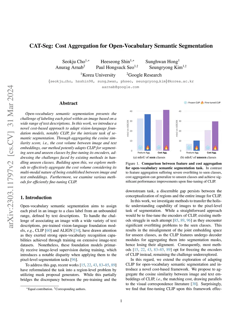 CAT-Seg: Cost Aggregation for Open-Vocabulary Semantic Segmentation