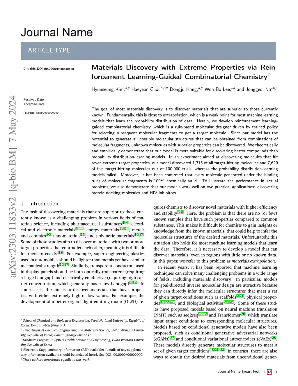 The goal of most materials discovery is to discover materials that are superior to those currently known. Fundamentally, this is close to extrapolation, which is a weak point for most machine learning models that learn the probability distribution of data. Herein, we develop reinforcement learning-guided combinatorial chemistry, which is a rule-based molecular designer driven by trained policy for selecting subsequent molecular fragments to get a target molecule. Since our model has the potential to generate all possible molecular structures that can be obtained from combinations of molecular fragments, unknown molecules with superior properties can be discovered. We theoretically and empirically demonstrate that our model is more suitable for discovering better compounds than probability distribution-learning models. In an experiment aimed at discovering molecules that hit seven extreme target properties, our model discovered 1,315 of all target-hitting molecules and 7,629 of five target-hitting molecules out of 100,000 trials, whereas the probability distribution-learning models failed. Moreover, it has been confirmed that every molecule generated under the binding rules of molecular fragments is 100% chemically valid. To illustrate the performance in actual problems, we also demonstrate that our models work well on two practical applications: discovering protein docking molecules and HIV inhibitors.