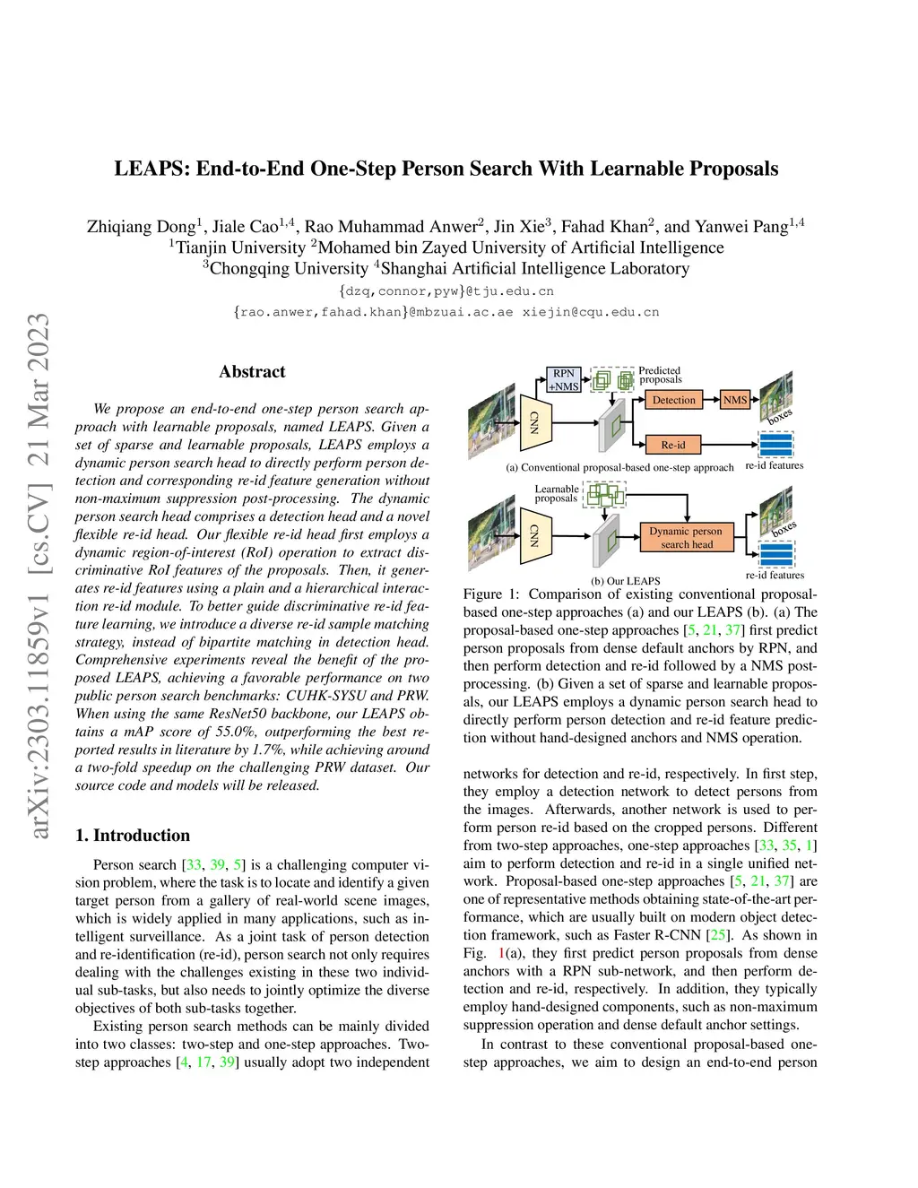 LEAPS: End-to-End One-Step Person Search With Learnable Proposals