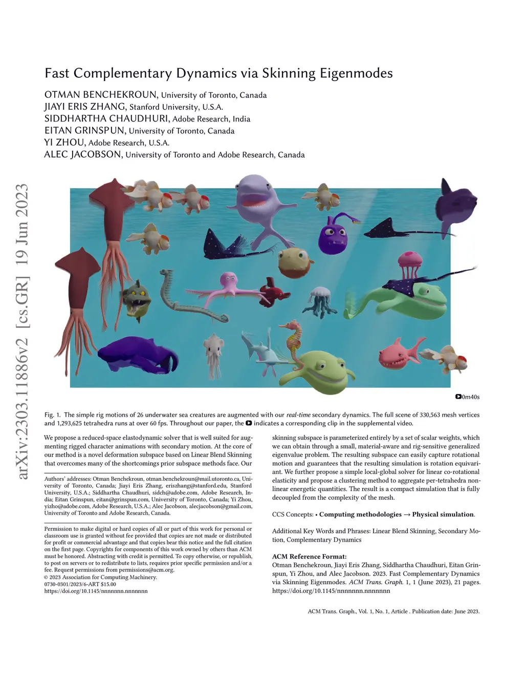 We propose a reduced-space elasto-dynamic solver that is well suited for augmenting rigged character animations with secondary motion. At the core of our method is a novel deformation subspace based on Linear Blend Skinning that overcomes many of the shortcomings prior subspace methods face. Our skinning subspace is parameterized entirely by a set of scalar weights, which we can obtain through a small, material-aware and rig-sensitive generalized eigenvalue problem. The resulting subspace can easily capture rotational motion and guarantees that the resulting simulation is rotation equivariant. We further propose a simple local-global solver for linear co-rotational elasticity and propose a clustering method to aggregate per-tetrahedra non-linear energetic quantities. The result is a compact simulation that is fully decoupled from the complexity of the mesh.