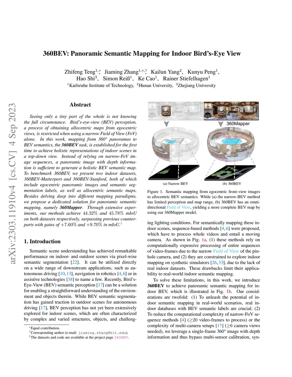 360BEV: Panoramic Semantic Mapping for Indoor Bird's-Eye View