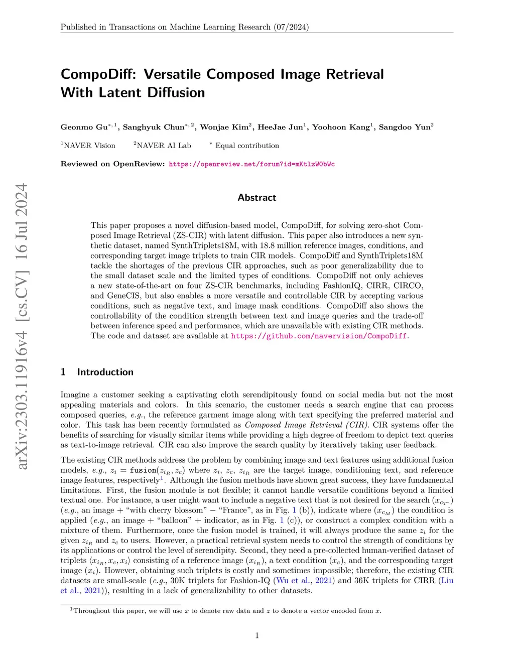 CompoDiff: Versatile Composed Image Retrieval With Latent Diffusion