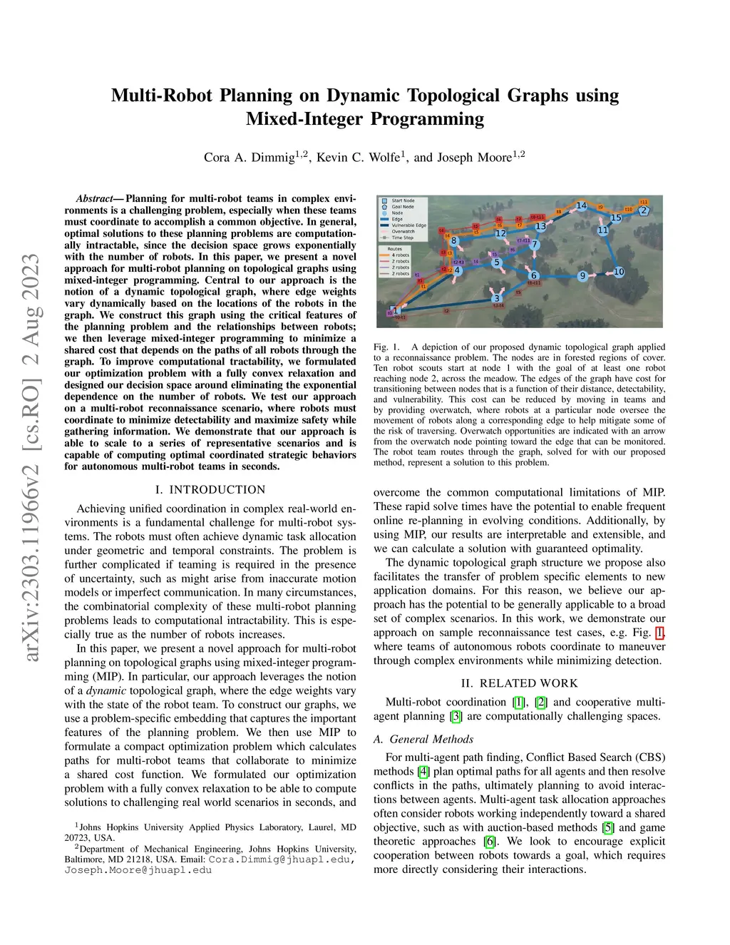 Planning for multi-robot teams in complex environments is a challenging problem, especially when these teams must coordinate to accomplish a common objective. In general, optimal solutions to these planning problems are computationally intractable, since the decision space grows exponentially with the number of robots. In this paper, we present a novel approach for multi-robot planning on topological graphs using mixed-integer programming. Central to our approach is the notion of a dynamic topological graph, where edge weights vary dynamically based on the locations of the robots in the graph. We construct this graph using the critical features of the planning problem and the relationships between robots; we then leverage mixed-integer programming to minimize a shared cost that depends on the paths of all robots through the graph. To improve computational tractability, we formulated our optimization problem with a fully convex relaxation and designed our decision space around eliminating the exponential dependence on the number of robots. We test our approach on a multi-robot reconnaissance scenario, where robots must coordinate to minimize detectability and maximize safety while gathering information. We demonstrate that our approach is able to scale to a series of representative scenarios and is capable of computing optimal coordinated strategic behaviors for autonomous multi-robot teams in seconds.