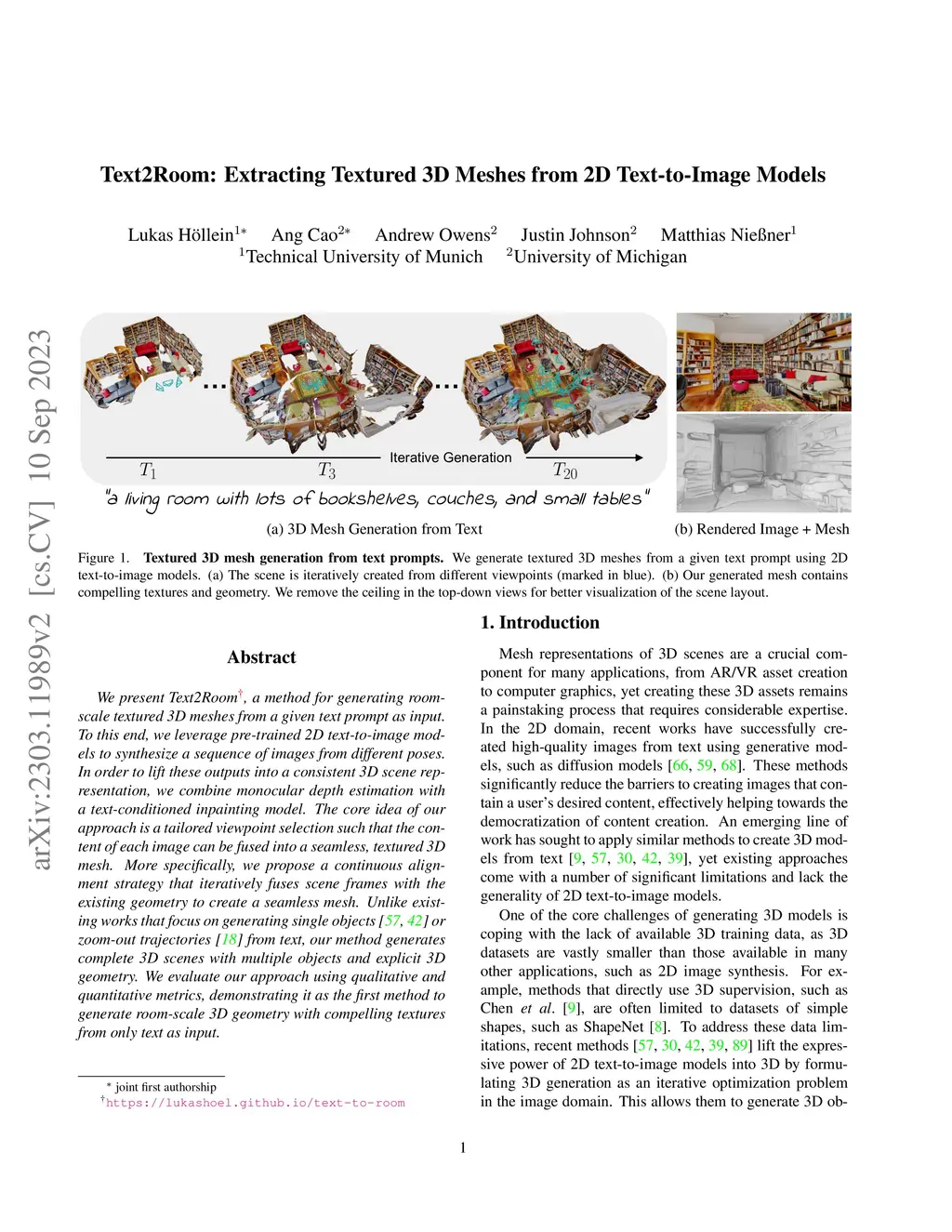 Text2Room: Extracting Textured 3D Meshes from 2D Text-to-Image Models