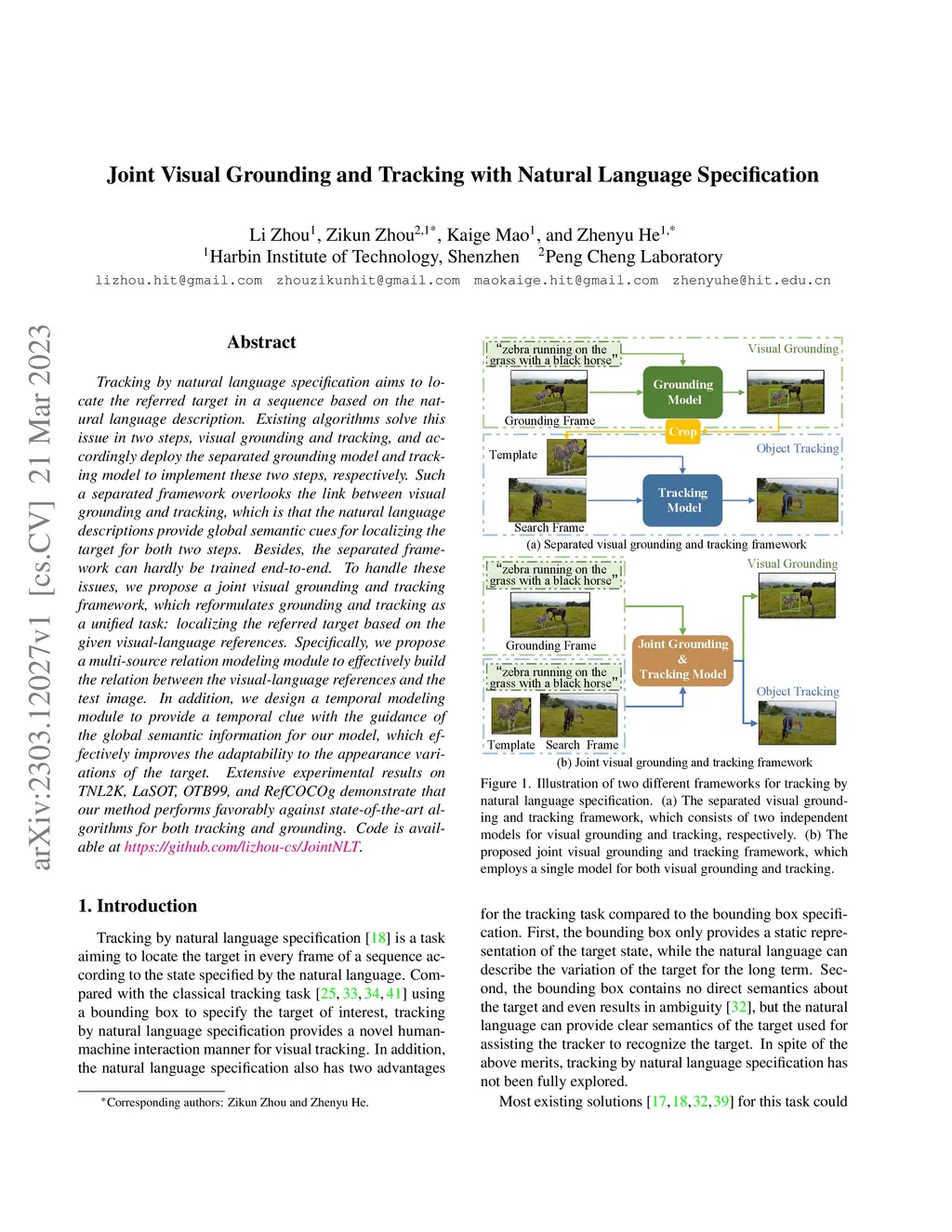 Joint Visual Grounding and Tracking with Natural Language Specification