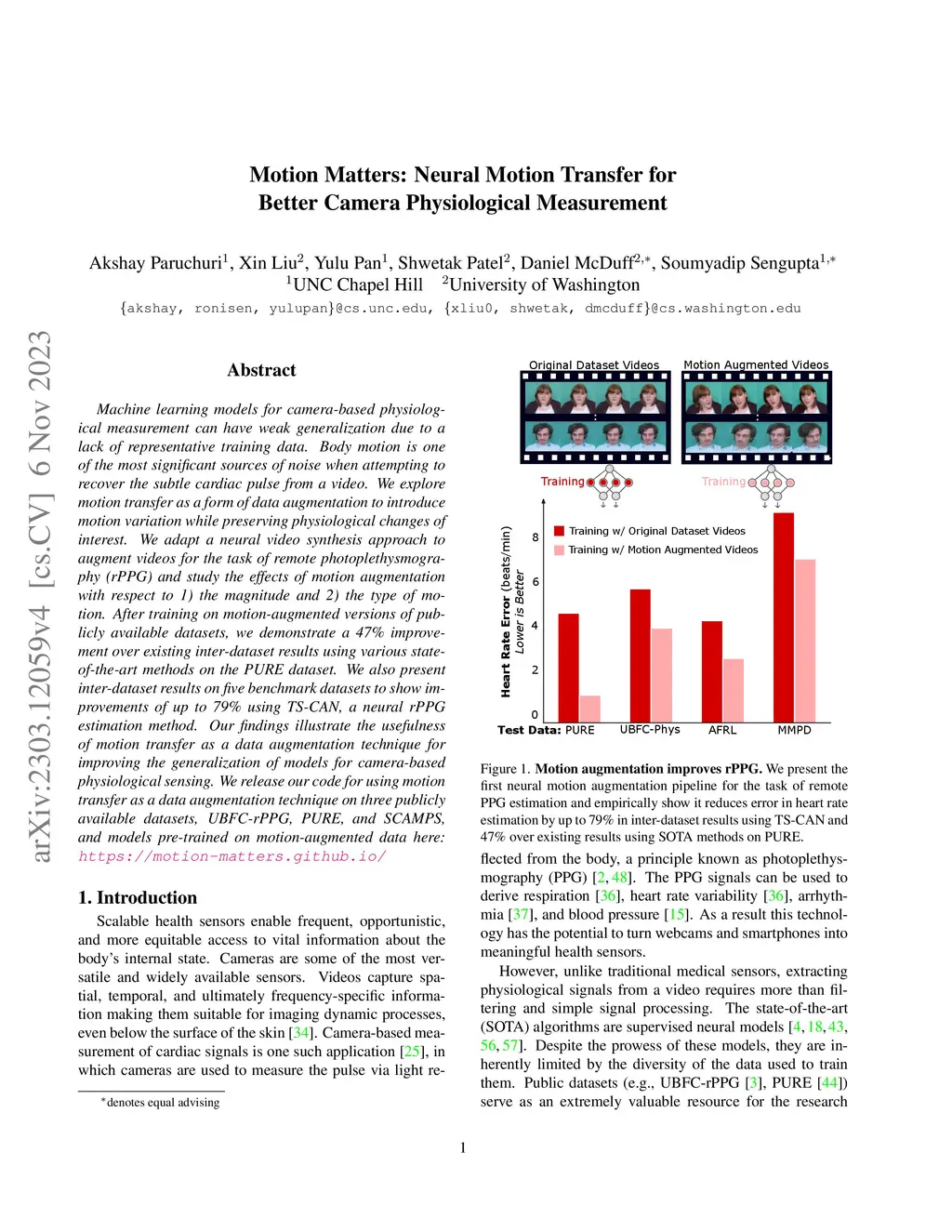 Motion Matters: Neural Motion Transfer for Better Camera Physiological Measurement