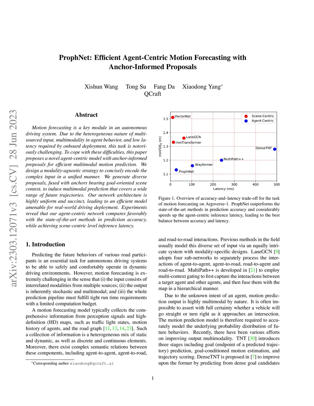 ProphNet: Efficient Agent-Centric Motion Forecasting with