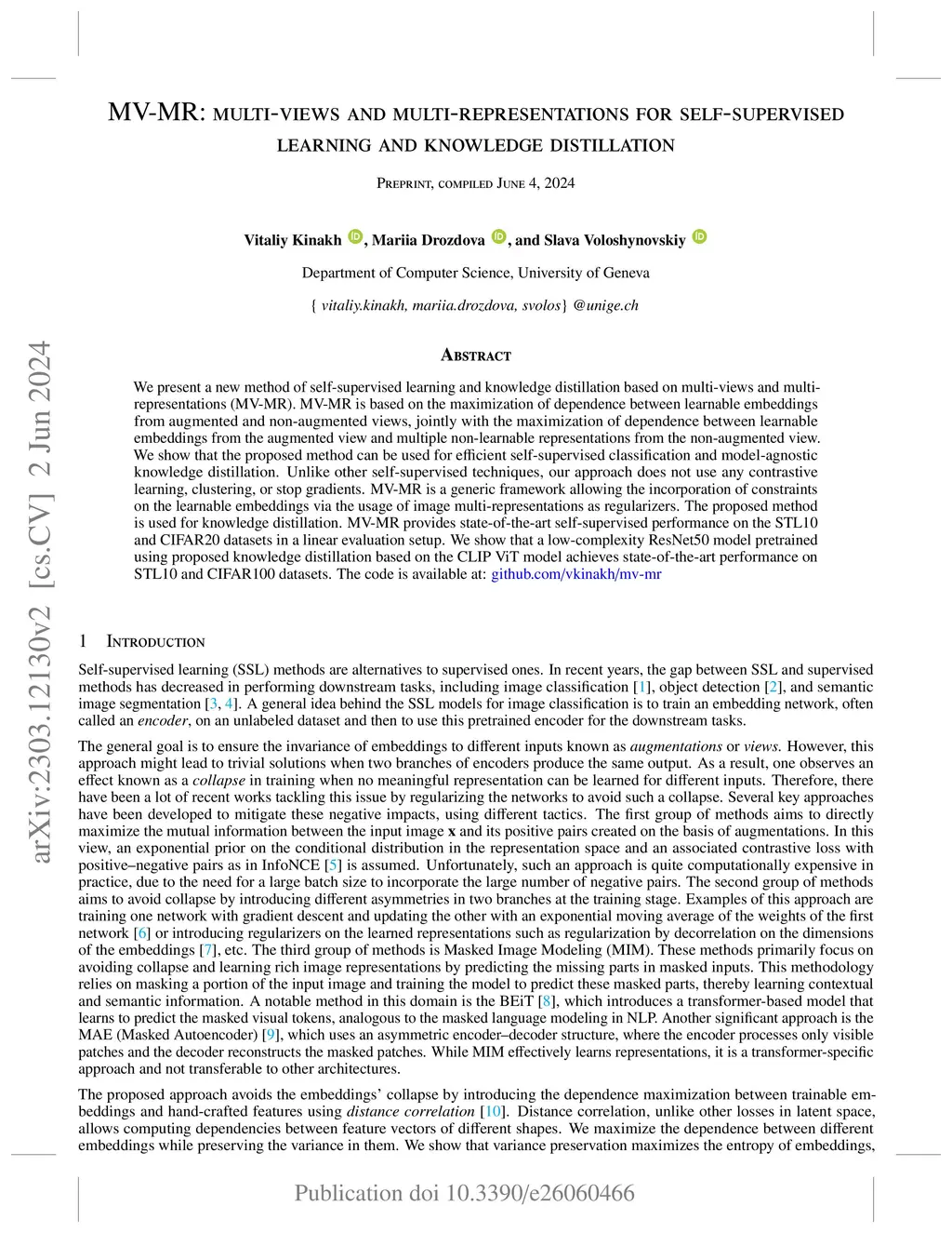 MV-MR: multi-views and multi-representations for self-supervised