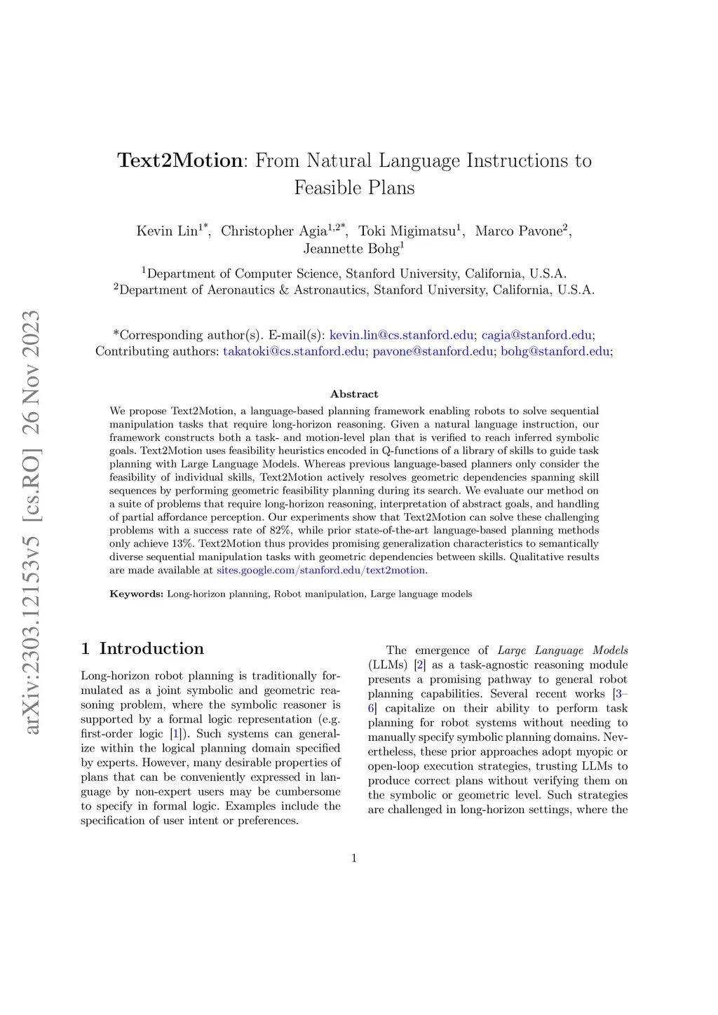 Text2Motion: From Natural Language Instructions to Feasible Plans