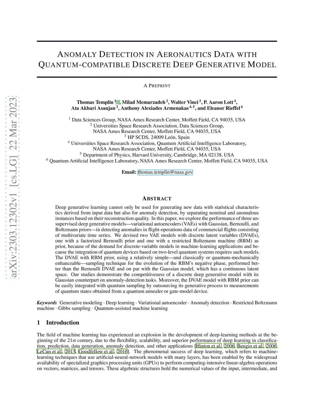 Anomaly Detection in Aeronautics Data with Quantum-compatible Discrete