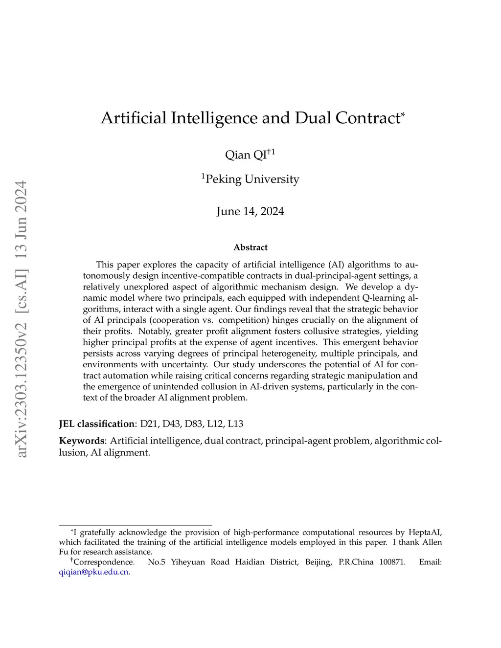 Artificial Intelligence and Dual Contract