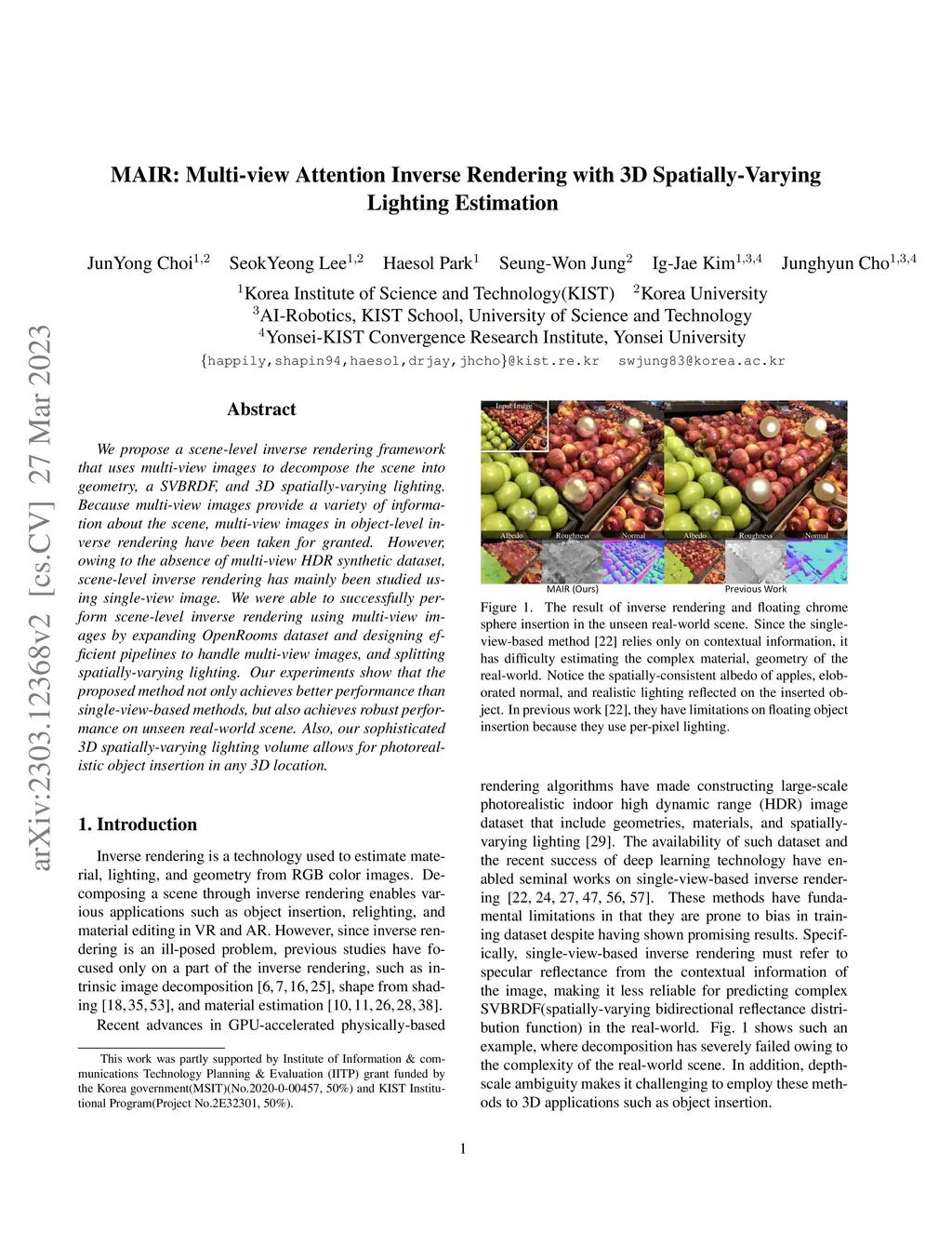 MAIR: Multi-view Attention Inverse Rendering with 3D Spatially-Varying