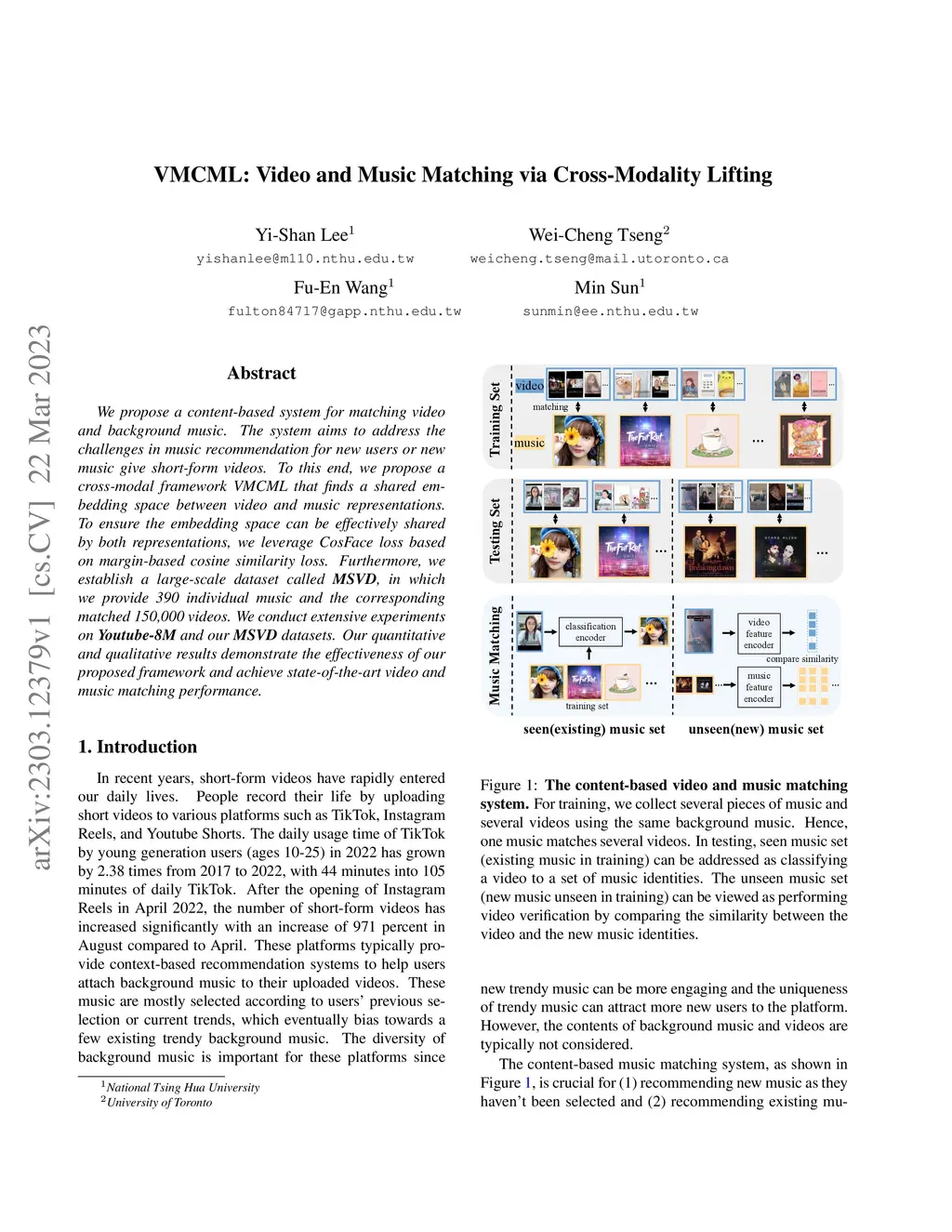VMCML: Video and Music Matching via Cross-Modality Lifting