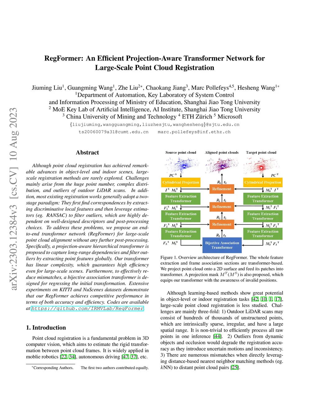 RegFormer: An Efficient Projection-Aware Transformer Network for