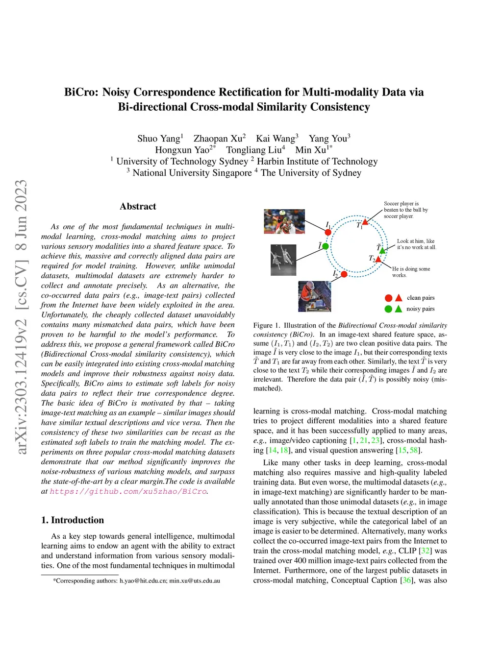 BiCro: Noisy Correspondence Rectification for Multi-modality Data via