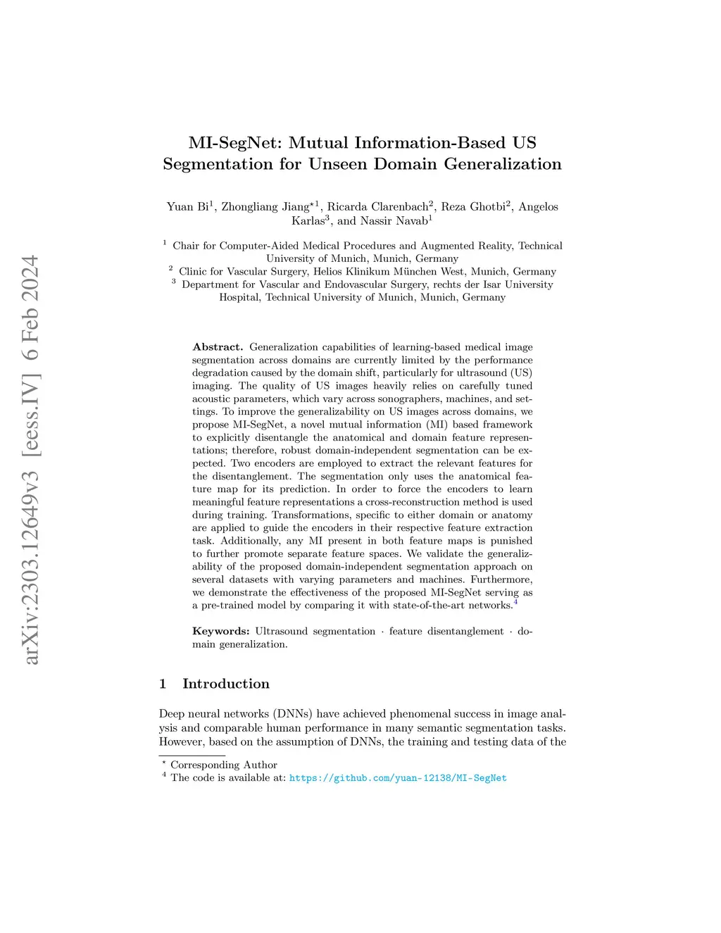 MI-SegNet: Mutual Information-Based US Segmentation for Unseen Domain