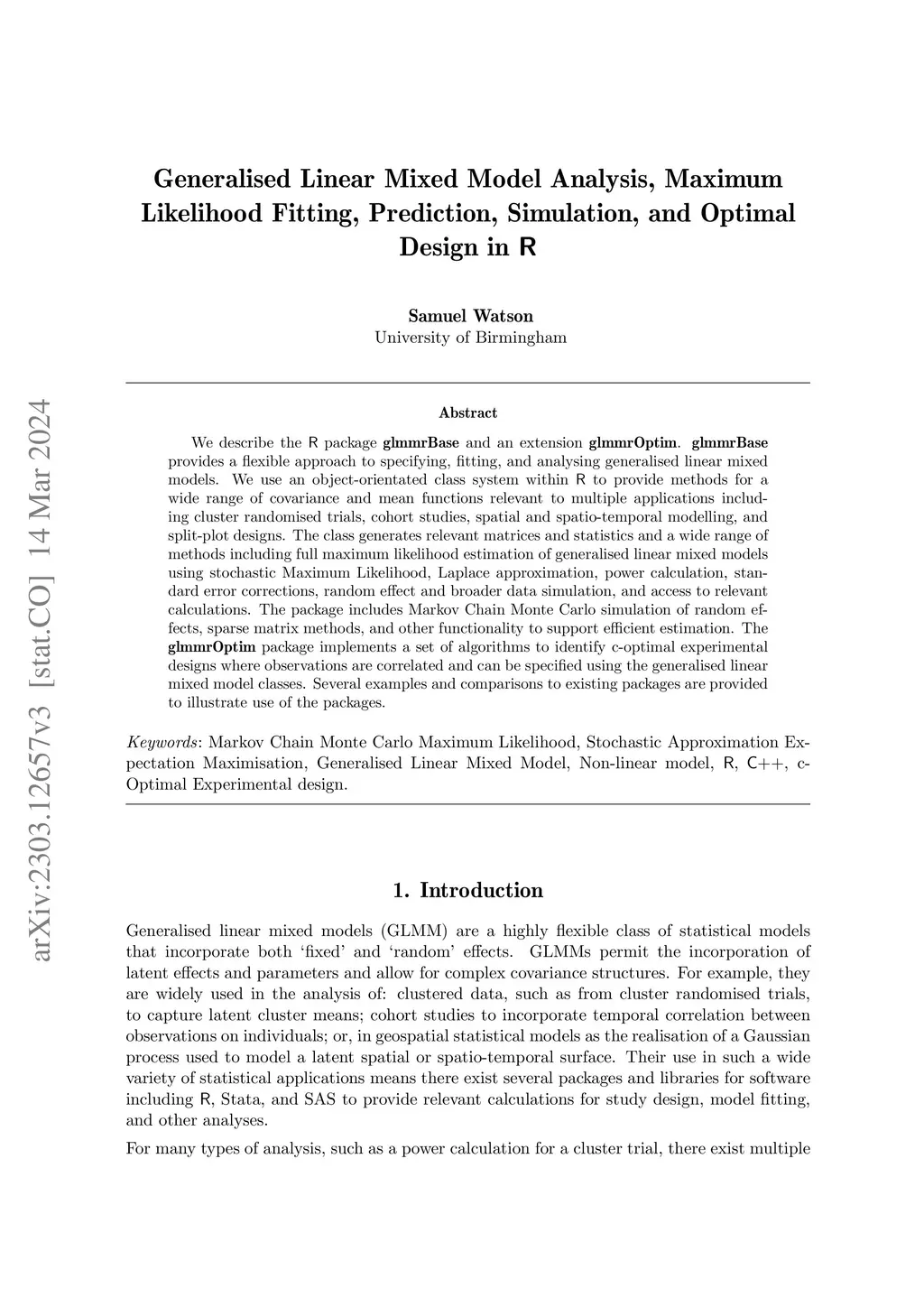 Generalised Linear Mixed Model Specification, Analysis, Fitting, and