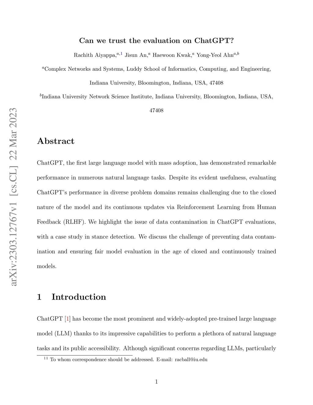ChatGPT, the first large language model (LLM) with mass adoption, has demonstrated remarkable performance in numerous natural language tasks. Despite its evident usefulness, evaluating ChatGPT's performance in diverse problem domains remains challenging due to the closed nature of the model and its continuous updates via Reinforcement Learning from Human Feedback (RLHF). We highlight the issue of data contamination in ChatGPT evaluations, with a case study of the task of stance detection. We discuss the challenge of preventing data contamination and ensuring fair model evaluation in the age of closed and continuously trained models.
