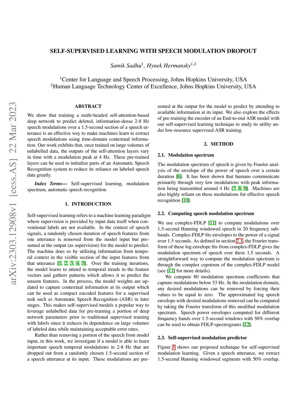 Self-supervised Learning with Speech Modulation Dropout
