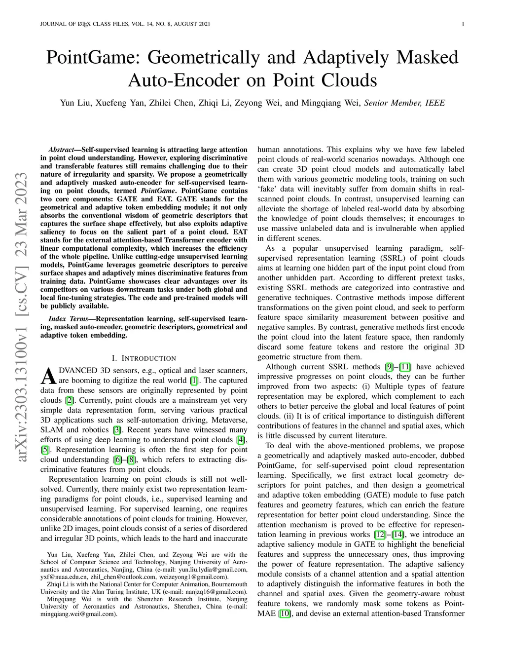 PointGame: Geometrically and Adaptively Masked Auto-Encoder on Point