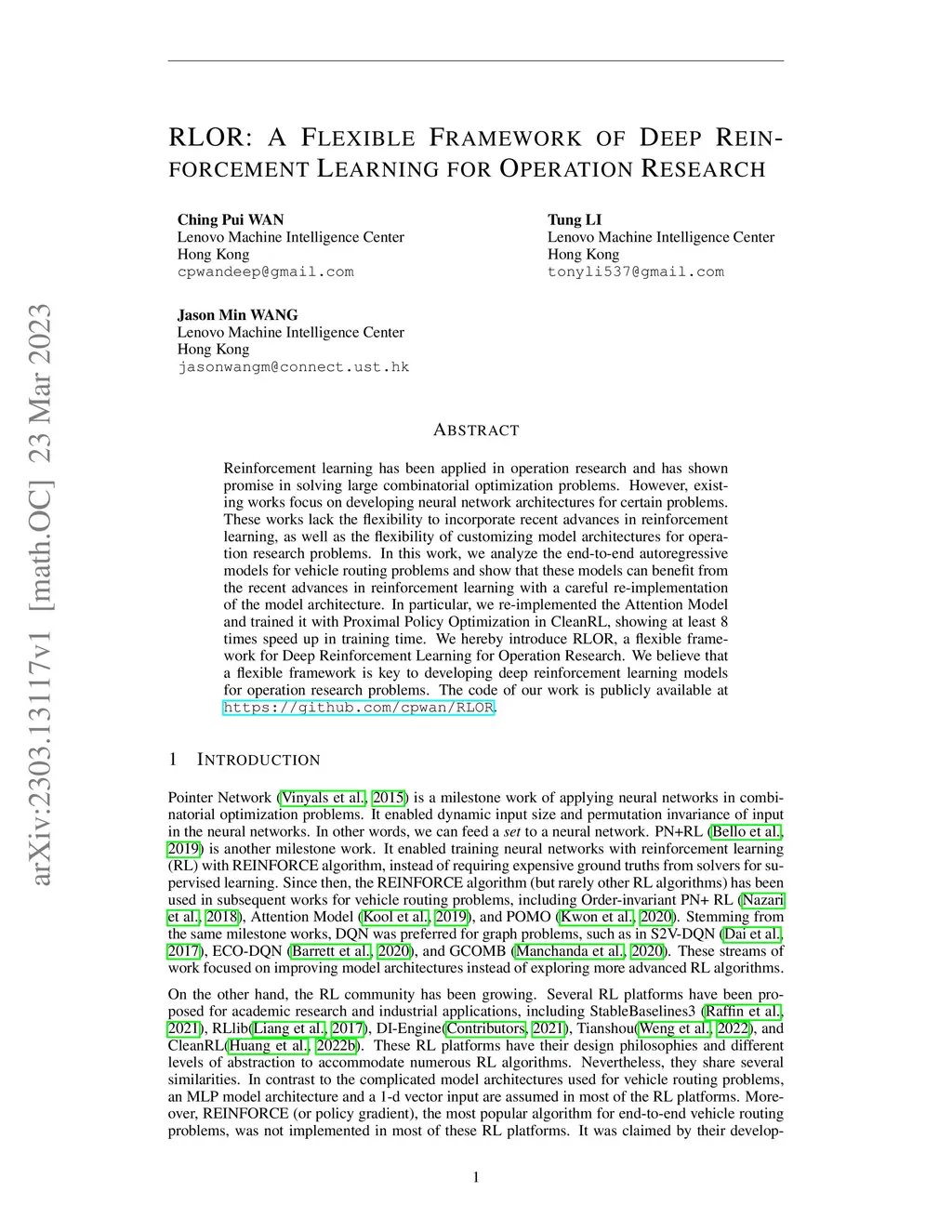 Reinforcement learning has been applied in operation research and has shown promise in solving large combinatorial optimization problems. However, existing works focus on developing neural network architectures for certain problems. These works lack the flexibility to incorporate recent advances in reinforcement learning, as well as the flexibility of customizing model architectures for operation research problems. In this work, we analyze the end-to-end autoregressive models for vehicle routing problems and show that these models can benefit from the recent advances in reinforcement learning with a careful re-implementation of the model architecture. In particular, we re-implemented the Attention Model and trained it with Proximal Policy Optimization (PPO) in CleanRL, showing at least 8 times speed up in training time. We hereby introduce RLOR, a flexible framework for Deep Reinforcement Learning for Operation Research. We believe that a flexible framework is key to developing deep reinforcement learning models for operation research problems. The code of our work is publicly available at https://github.com/cpwan/RLOR.