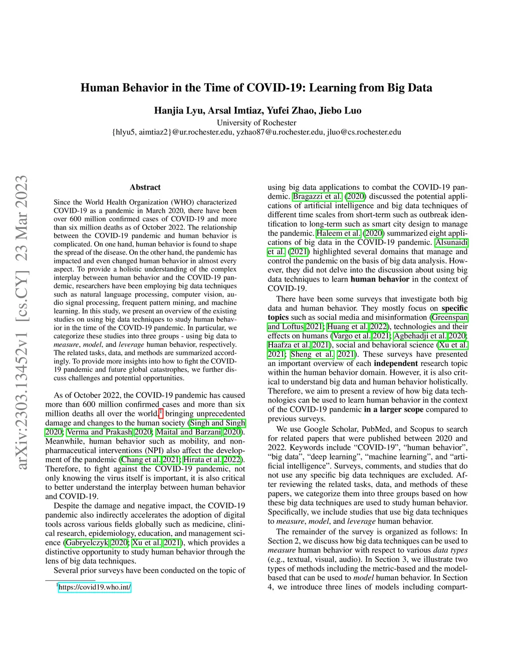 Human Behavior in the Time of COVID-19: Learning from Big Data