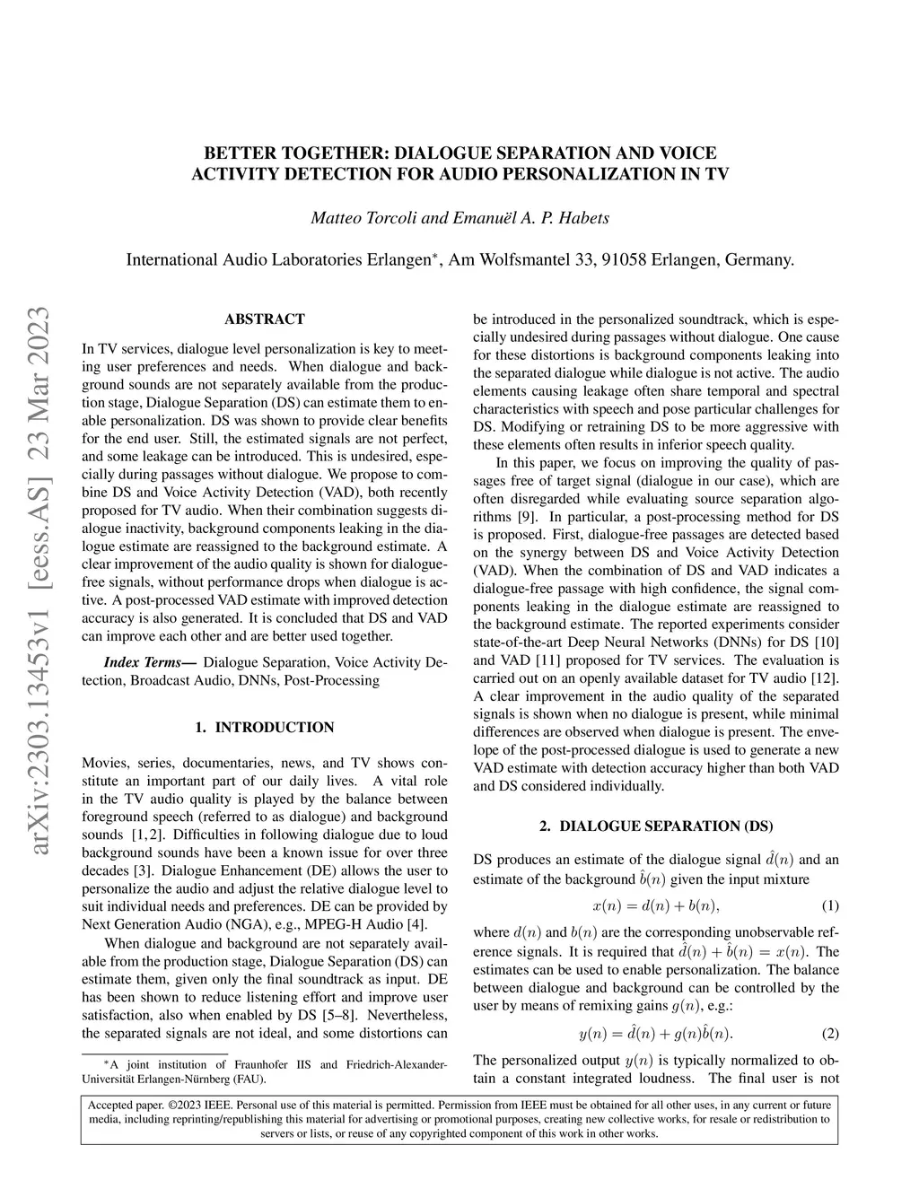 In TV services, dialogue level personalization is key to meeting user preferences and needs. When dialogue and background sounds are not separately available from the production stage, Dialogue Separation (DS) can estimate them to enable personalization. DS was shown to provide clear benefits for the end user. Still, the estimated signals are not perfect, and some leakage can be introduced. This is undesired, especially during passages without dialogue. We propose to combine DS and Voice Activity Detection (VAD), both recently proposed for TV audio. When their combination suggests dialogue inactivity, background components leaking in the dialogue estimate are reassigned to the background estimate. A clear improvement of the audio quality is shown for dialogue-free signals, without performance drops when dialogue is active. A post-processed VAD estimate with improved detection accuracy is also generated. It is concluded that DS and VAD can improve each other and are better used together.