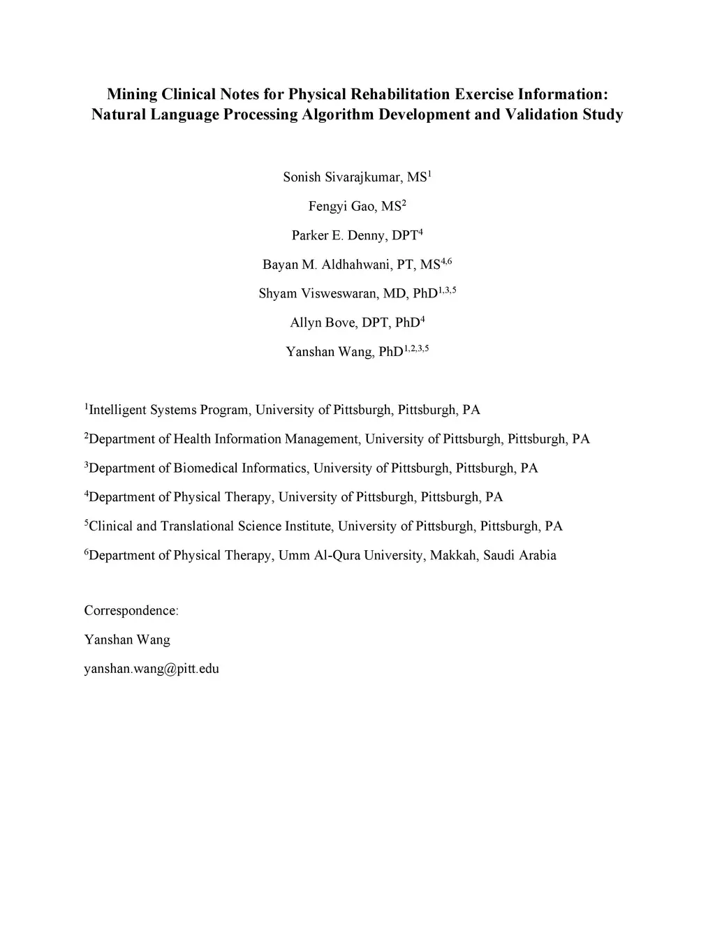 Natural Language Processing Algorithm Development and Validation Study
