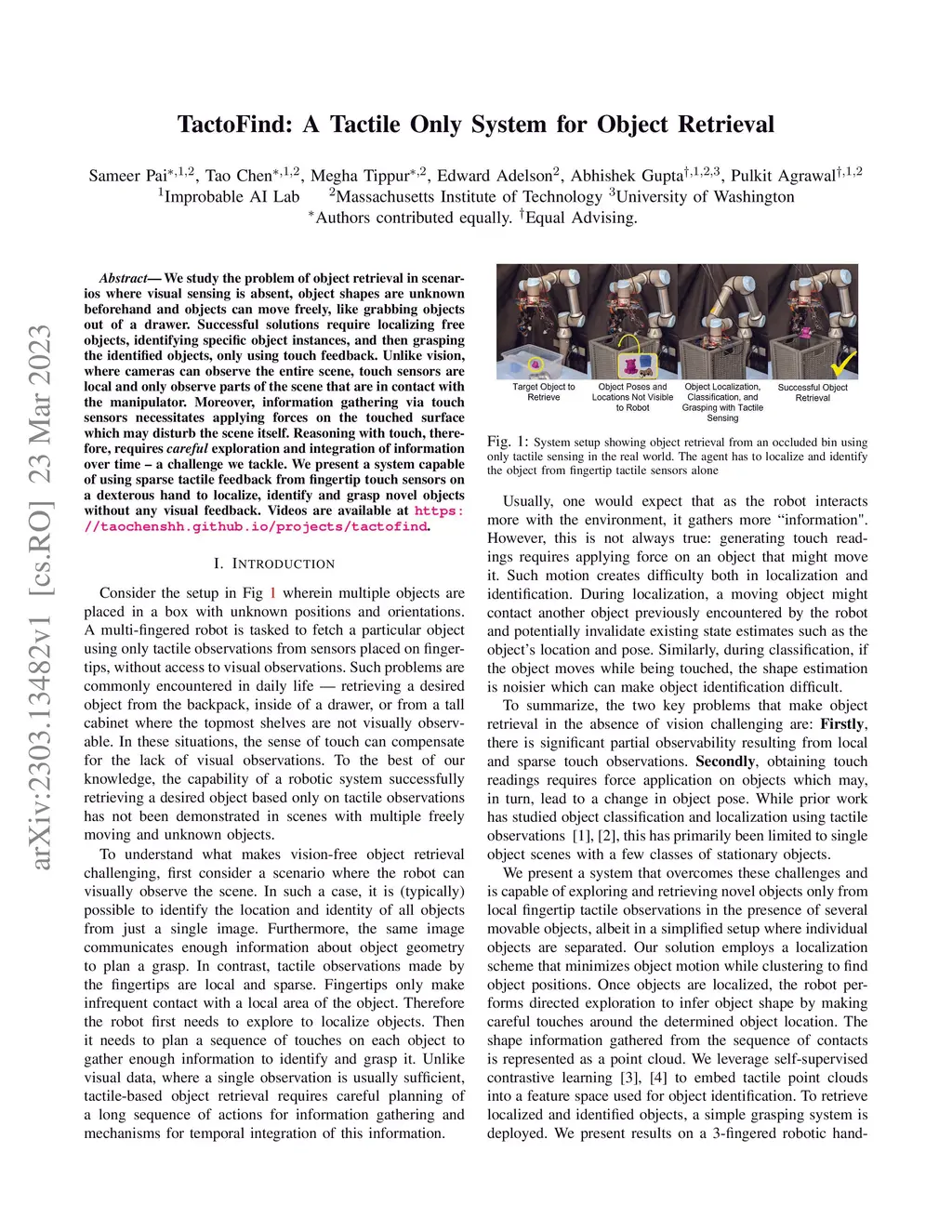 TactoFind: A Tactile Only System for Object Retrieval