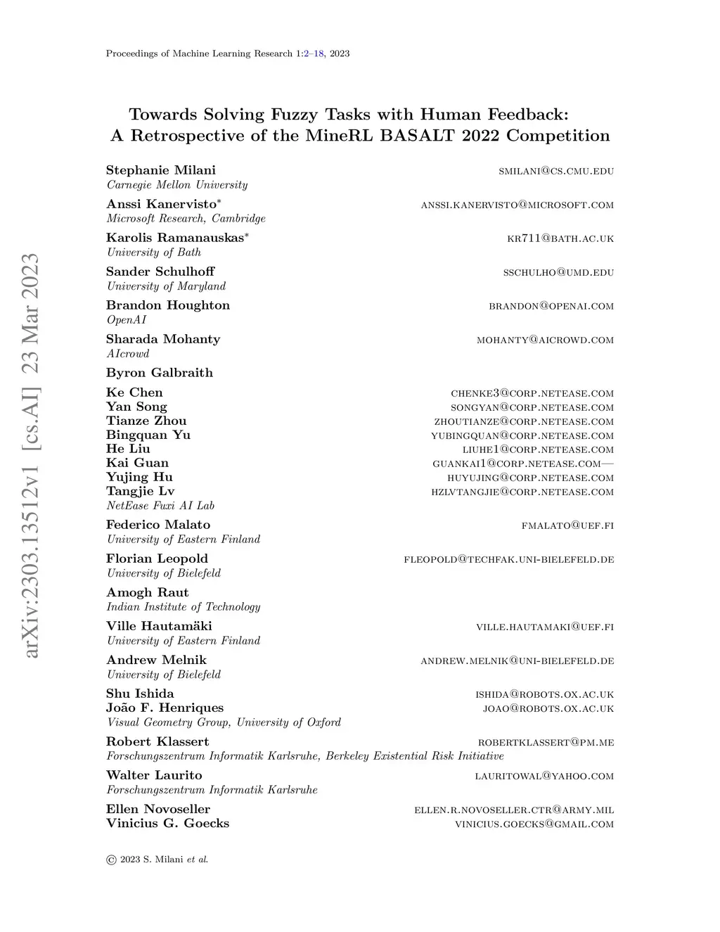 MineRL BASALT 2022 Competition