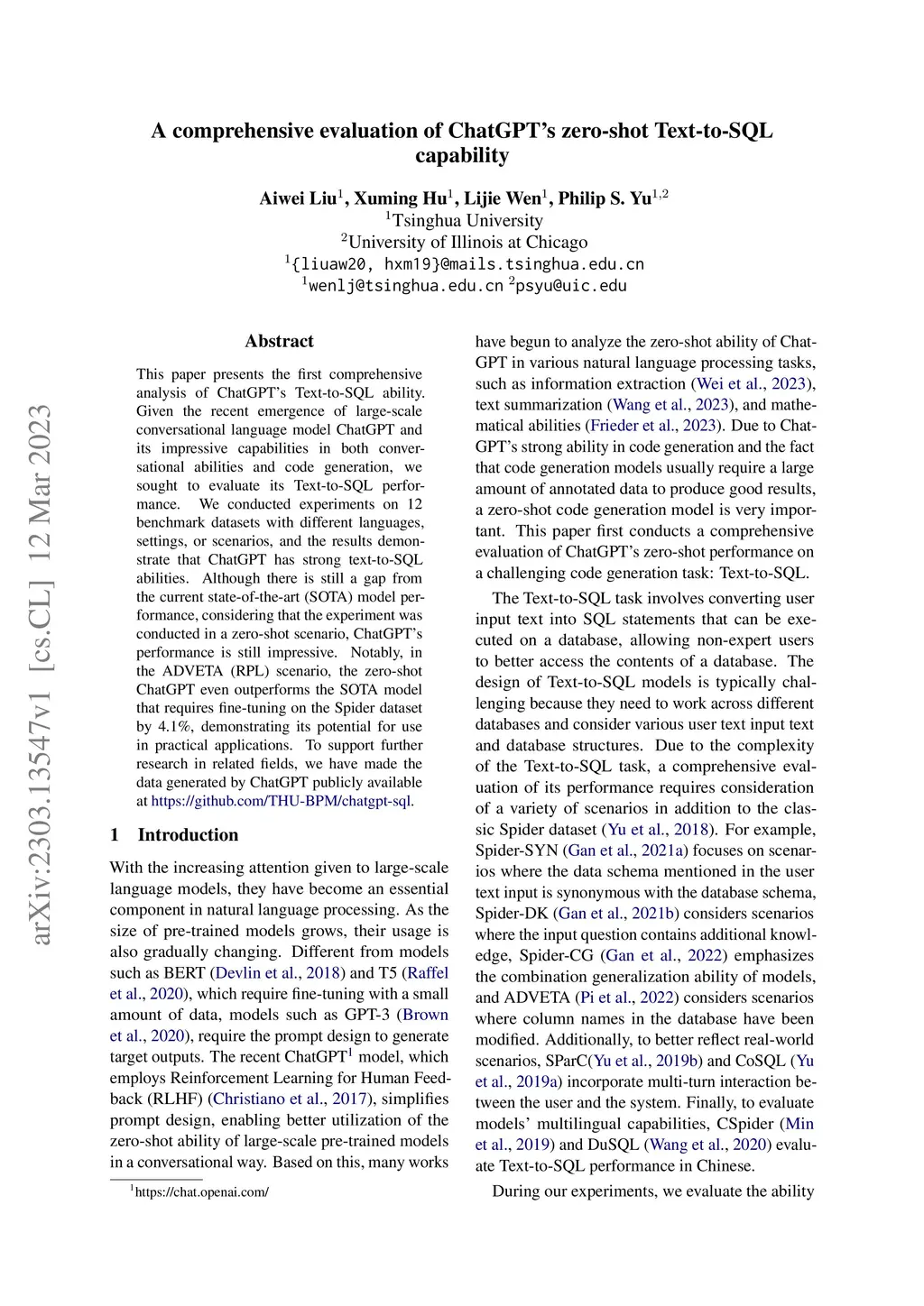 A comprehensive evaluation of ChatGPT's zero-shot Text-to-SQL capability