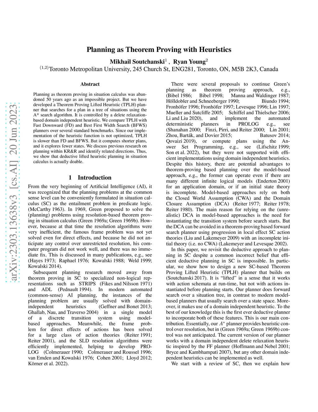 Planning as theorem proving in situation calculus was abandoned 50 years ago as an impossible project. But we have developed a Theorem Proving Lifted Heuristic (TPLH) planner that searches for a plan in a tree of situations using the A* search algorithm. It is controlled by a delete relaxation-based domain independent heuristic. We compare TPLH with Fast Downward (FD) and Best First Width Search (BFWS) planners over several standard benchmarks. Since our implementation of the heuristic function is not optimized, TPLH is slower than FD and BFWS. But it computes shorter plans, and it explores fewer states. We discuss previous research on planning within KR\&R and identify related directions. Thus, we show that deductive lifted heuristic planning in situation calculus is actually doable.