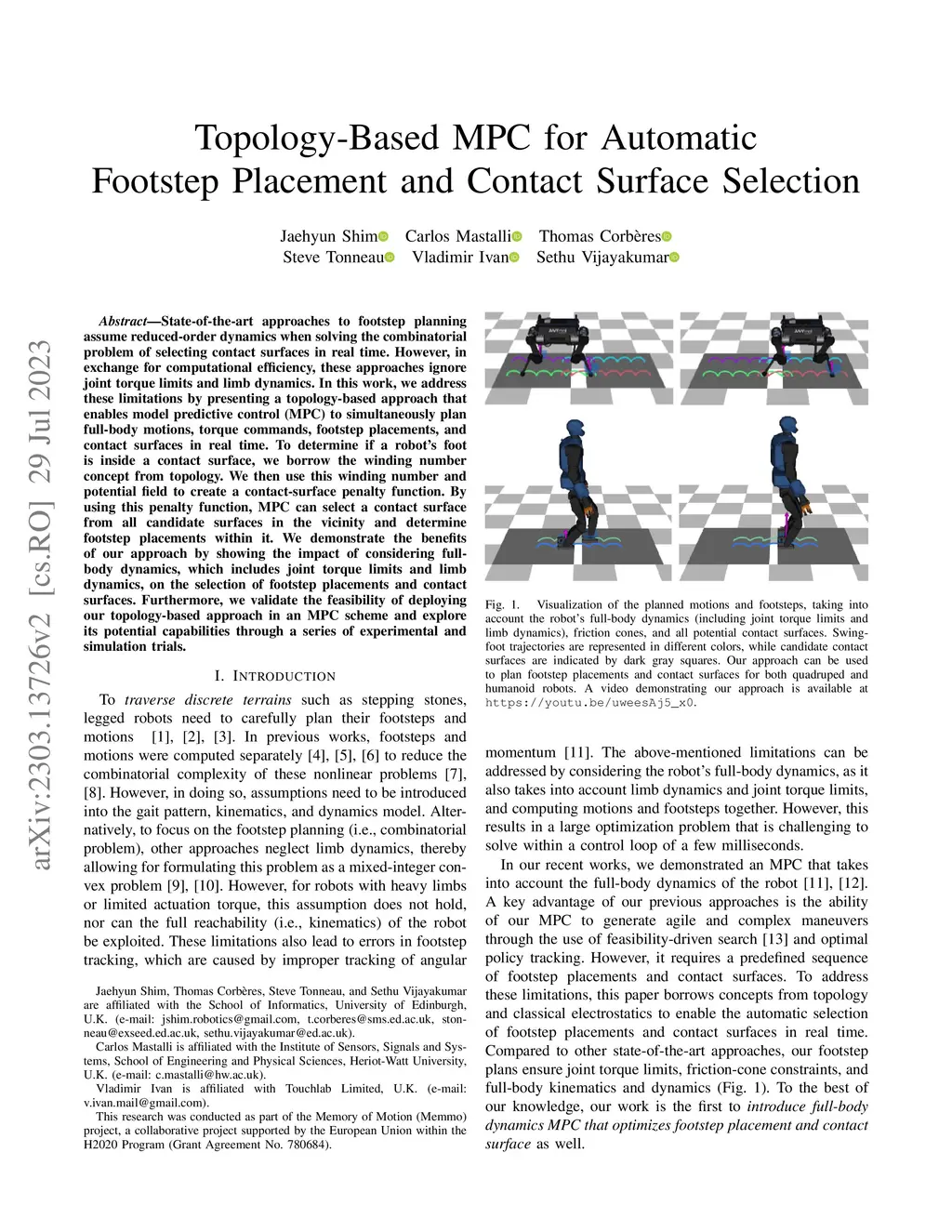 Topology-Based MPC for Automatic Footstep Placement and Contact Surface