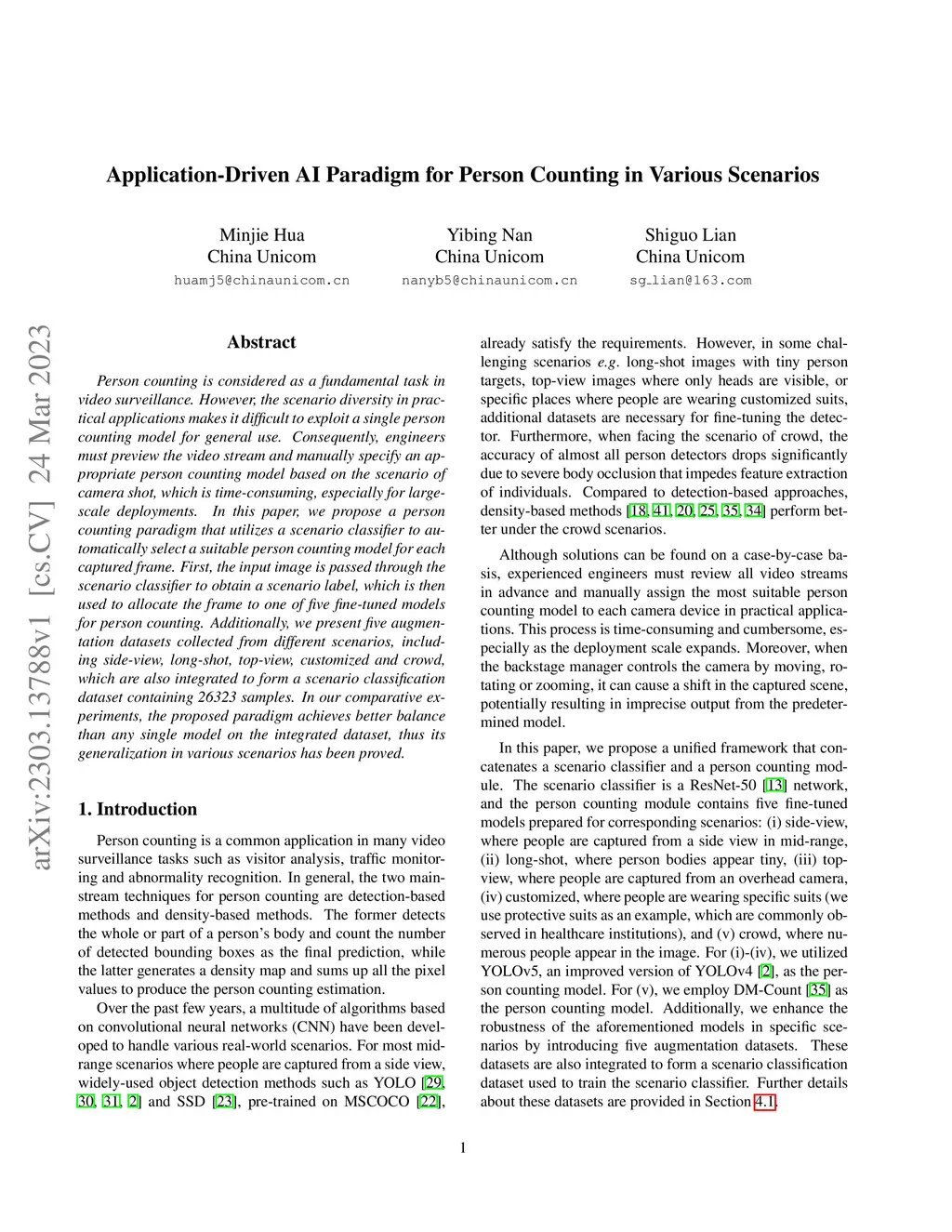 Application-Driven AI Paradigm for Person Counting in Various Scenarios
