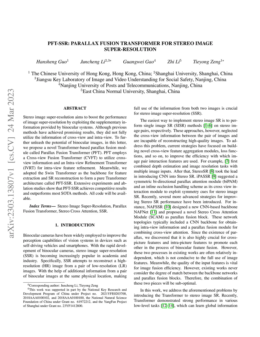 PFT-SSR: Parallax Fusion Transformer for Stereo Image Super-Resolution