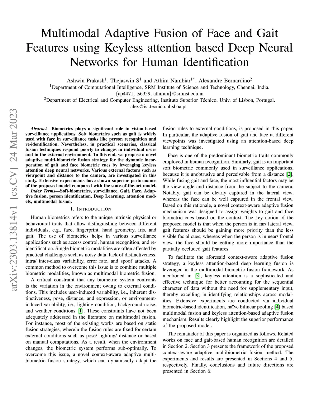 Biometrics plays a significant role in vision-based surveillance applications. Soft biometrics such as gait is widely used with face in surveillance tasks like person recognition and re-identification. Nevertheless, in practical scenarios, classical fusion techniques respond poorly to changes in individual users and in the external environment. To this end, we propose a novel adaptive multi-biometric fusion strategy for the dynamic incorporation of gait and face biometric cues by leveraging keyless attention deep neural networks. Various external factors such as viewpoint and distance to the camera, are investigated in this study. Extensive experiments have shown superior performanceof the proposed model compared with the state-of-the-art model.