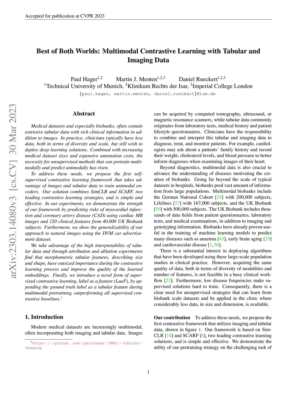 Best of Both Worlds: Multimodal Contrastive Learning with Tabular and