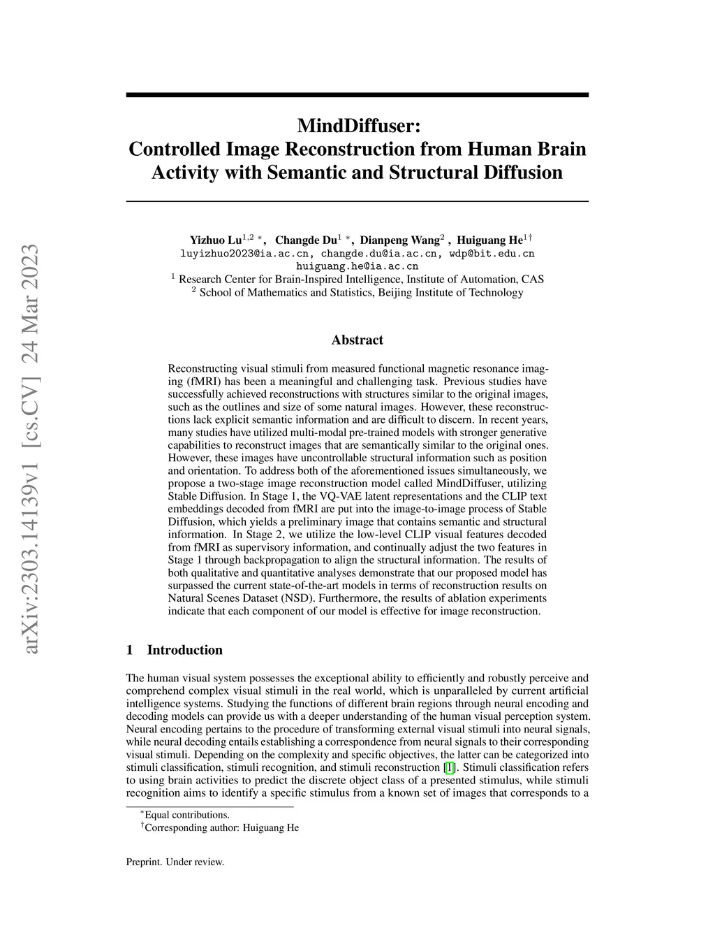 MindDiffuser: Controlled Image Reconstruction from Human Brain Activity