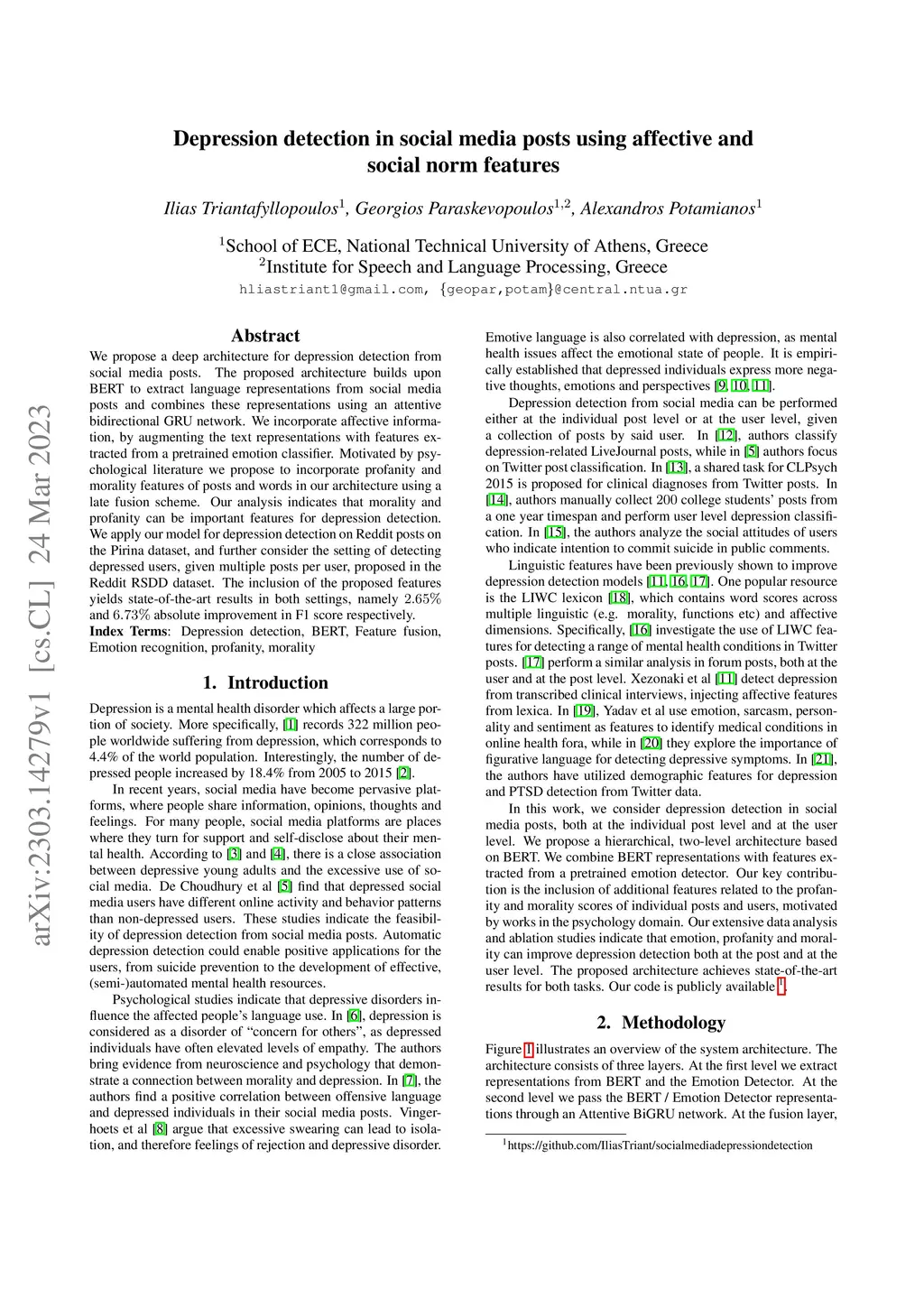 Depression detection in social media posts using affective and social