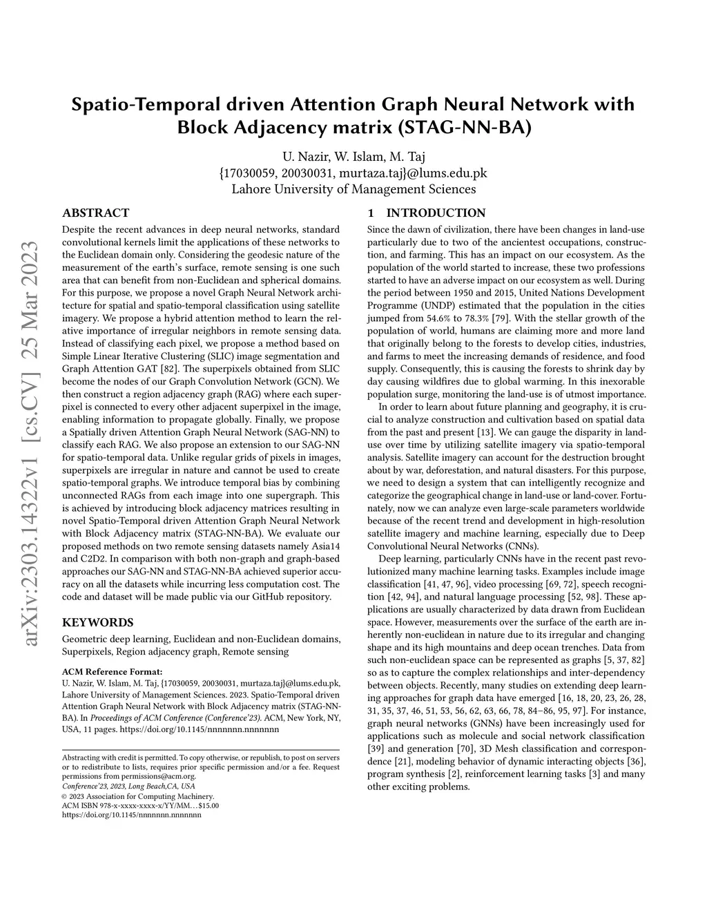 Spatio-Temporal driven Attention Graph Neural Network with Block Adjacency matrix (STAG-NN-BA) for Remote Land-use Change Detection